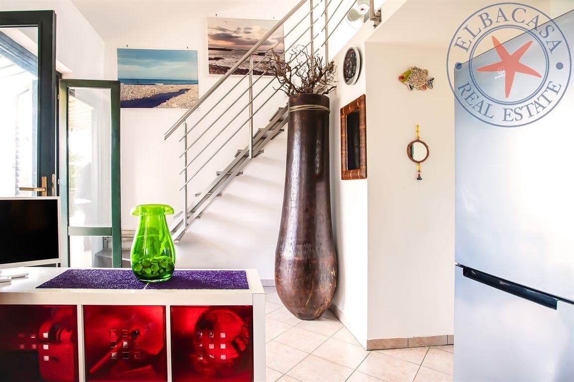 L’ingresso si apre su una luminosa cucina-soggiorno in ambiente unico, cuore della casa, perfetta per vivere momenti di relax in totale comodità. La zona notte comprende una camera matrimoniale con un’ulteriore stanzetta, ideale per ospiti o bambini, oltre a un soppalco abitabile raggiungibile tramite una moderna scala in acciaio, che aggiunge un tocco di stile e amplifica gli spazi disponibili. Il bagno, completo di doccia, si presenta in ottime condizioni, così come l’intero immobile, venduto completamente arredato e pronto per essere abitato.