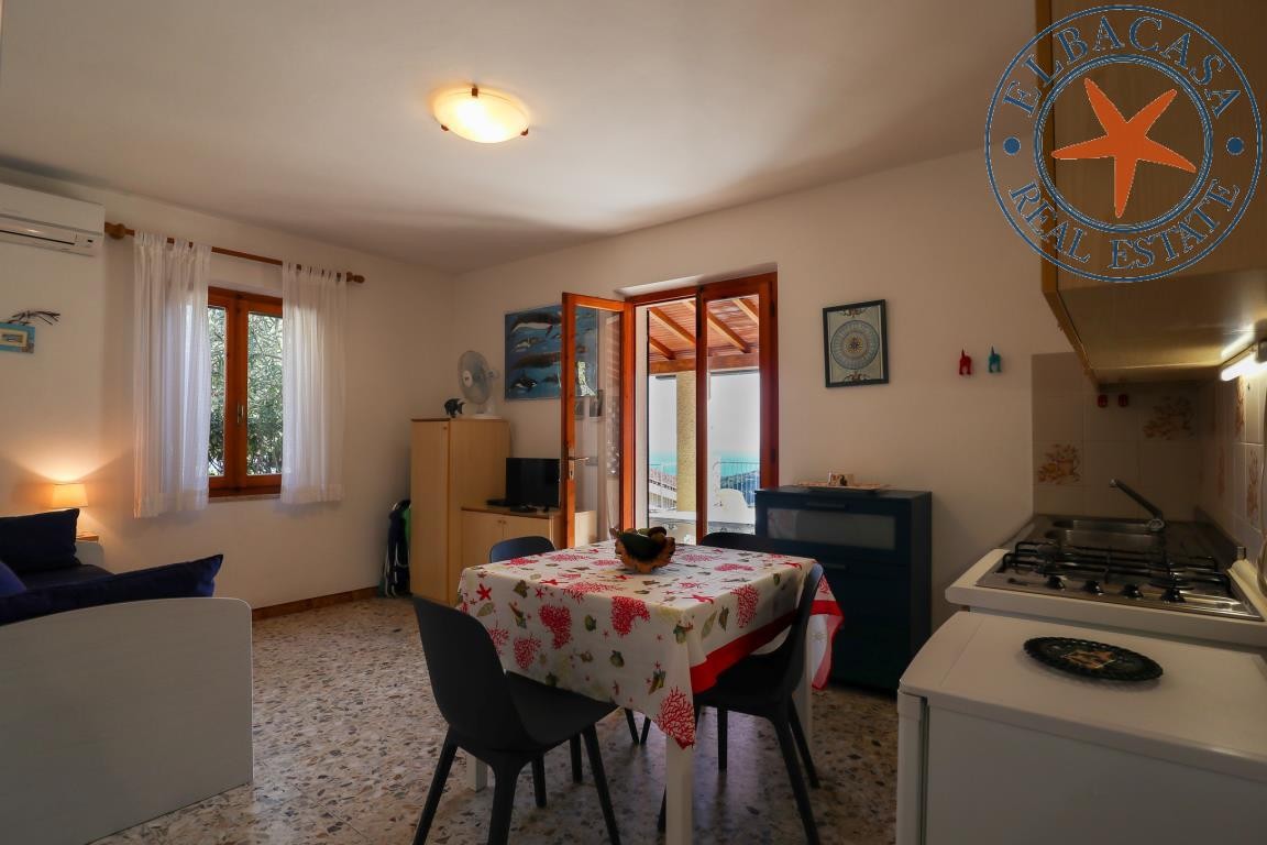 Proponiamo un appartamento con una bellissima vista sul mare. La proprietà, libera su tre lati, è composta da soggiorno con angolo cottura, una camera da letto matrimoniale e un bagno. Esternamente è presente una terrazza con un pergolato, un ampio spazio di proprietà con doccia e lavabo esterno.