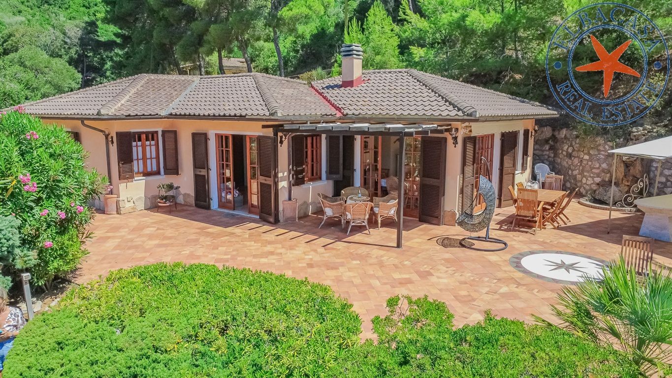 Questa non è una semplice casa: è un angolo di paradiso, incastonato tra le colline assolate di Capoliveri, in una zona riservata dove la pace è di casa e il mare sembra quasi entrare nel giardino.
